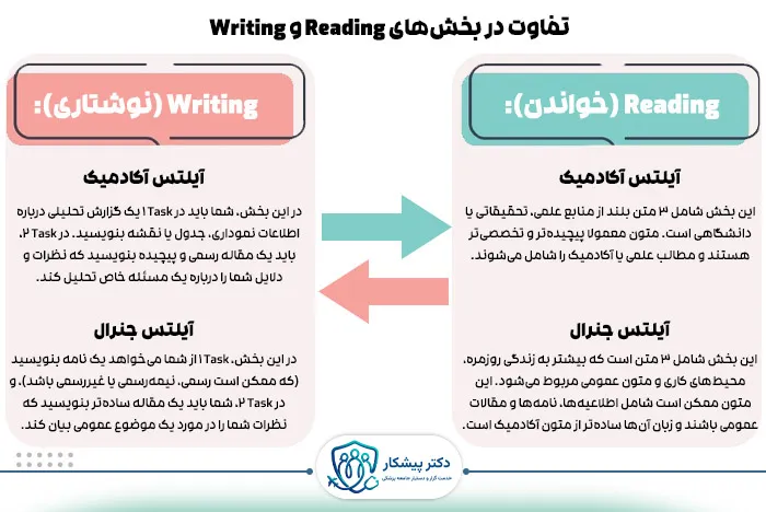 آزمونهای آیلتس آکادمیک و جنرال تفاوتهایی در بخشهای Reading و Writing دارند که باید به آنها توجه کنید.